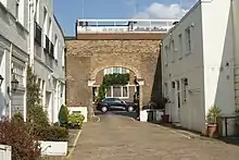The archway entrance to Clarendon Place from the mews in August 2014