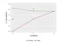 - Interim looks to assess stopping the trial early either for success, futility or harm