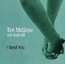 "I Need You" is a song written by David Lee and Tony Lane, and recorded by American country music artist Tim McGraw and his wife, Faith Hill as a duet. It was released in April 2007 as the second single from the album, Let It Go. The song peaked at number 8 on the country charts in August 2007, partly due to competition with individual singles from Hill and McGraw ("Lost" and "If You're Reading This", respectively).