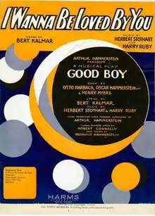 "I Wanna Be Loved by You" is a song written by Herbert Stothart and Harry Ruby, with lyrics by Bert Kalmar, for the 1928 musical Good Boy.[1] It was first performed by Helen Kane on September 5, 1928,[2] who was the inspiration behind the cartoon Betty Boop. "I Wanna Be Loved by You" was chosen as one of the Songs of the Century in a survey by the RIAA to which 200 people responded (out of 1300 asked). One of Marilyn Monroe's most famous musical performances is her singing the song in Billy Wilder's classic 1959 farce Some Like It Hot.