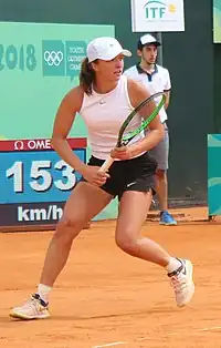 Świątek began competing on the ITF Women's Circuit in 2016 and played on the circuit through the end of 2018. She won all seven ITF singles finals she reached, ranging from the first four at the $10k to $15k level to one at the $25k level followed up by two at the $60k level. Her first three titles came at 15 years old.[20] The fourth was in February 2018 in her first tournament back from a seven-month layoff due to injury.[14] After a $25k title in April, Świątek moved up to higher-level ITF events later that month. Following her junior Wimbledon title in July, she skipped the junior US Open to stay in Europe. During the two weeks of the US Open, she won back-to-back $60k titles at the NEK Ladies Open in Hungary and the Montreux Ladies Open in Switzerland.[20] During the second event, she defeated top seed and world No. 120, Mariana Duque-Mariño.[21][22] These were Świątek's last two ITF tournaments of the year.[20] With these two titles, she entered the top 200 for the first time at the age of 17, rising from No. 298 to No. 180 in those two weeks.[23]