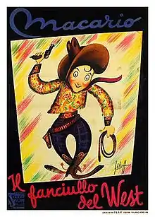 Il fanciullo del West (transl. The Boy of the West ) is a 1943 Italian comedy film directed by Giorgio Ferroni and starring Erminio Macario. It is named after Puccini's opera La fanciulla del West (The Girl of the West ) and is considered the first western parody in Italian cinema[1] and the precursor of the Spaghetti Western genre.[2][3]