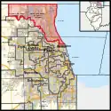 The district covers parts of Cook and Lake counties, as of the 2011 redistricting which followed the 2010 census. All or parts of Beach Park, Buffalo Grove, Deerfield, Fox Lake, Glencoe, Grayslake, Highland Park, Lake Bluff, Lake Forest, Lake Villa, Lindenhurst, Libertyville, Morton Grove, Mundelein, North Chicago, Northbrook, Prospect Heights, Round Lake, Round Lake Beach, Vernon Hills, Waukegan, Wheeling, and Zion are included.[4] The boundaries became effective on January 3, 2013.