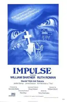 Impulse is a 1974 American horror thriller film, starring William Shatner as a serial killer of wealthy widows. Ruth Roman, Kim Nicholas, Jennifer Bishop and Harold Sakata co-star. It was written by Tony Crechales and directed by William Grefé.