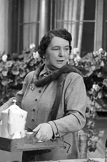 Liesl Karlstadt as Theresa Wurzinger during filming.