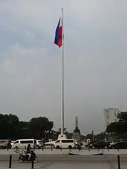 The Independence Flagpole was the location where the Philippine flag was hoisted on July 4, 1946, when full independence was achieved from the United States. The flagpole was designed to be at 45.72 m (150.0 ft) high but was damaged by Typhoon Angela (Rosing) in 1995 reducing the flagpole's height to just 32 m (105 ft).[3]