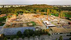 The venue is the area surrounding the Kienberg[2] that was originally known as Berliner Gartenschau. This was the horticultural exposition held in 1987, in that times in East Germany, in commemoration of the 750th birthday of the city of Berlin.[3] In 1991, after German reunification the park was renamed to Erholungspark Marzahn and expanded afterwards. During the years 2000 - 2006 several gardens modeled after Asian examples were added. Since 2007 gardens modelled after European examples followed.[4] In 2013 works began to prepare for the IGA 2017.[5]