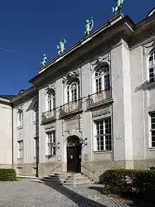 From 1916 to 1928 (not continuous)[2] the singer Lilli Lehmann used the summer months for private masterclasses at the Salzburg Mozarteum; the center point of these classes were the Mozart renditions.[3] In 1925, the violinist Willy Schweyda, who worked previously in Salzburg but at this time worked in Prague, joined.[3] In Summer 1929, after the death of Lilli Lehmann, the conductor [2] Julian Friedman led an orchestra academy especially for American students, along with courses in musical dramatic acting, piano, and composition.[4] From 1930 to 1937 the program was called "Musical Summer Courses", from 1937 to 1940 "Mozarteum's Summer Academy for Music, Theater, and Dance".[5] From 1940 to 1944 a "Summer Academy for Foreigners at the Mozarteum" took place, with less popularity due to wartime policies.[2] In 1947 the conductor Bernhard Paumgartner reorganized the course offering, now under the name "International Summer Academy at Mozarteum" and together with Eberhard Preußner took over leadership.[6] In 1960 Preußner followed as the sole leader, then came Heinz Scholz in 1965, Robert Wagner in 1966, Paul Schilhawsky in 1972, Rolf Liebermann in 1983, Peter Lang in 1988, Paul Roczek in 1991, Alexander Mullenbach in 2003, Reinhart von Gutzeit in 2014, Siegfried Mauser together with Wolfgang Holzmair in 2015,[7] Holzmair as sole leader in 2017 [8] and Hannfried Lucke in 2019 .[1]