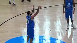 Bourousis shooting a free throw, during the 2015 EuroBasket