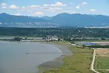 Two jetties, owned by the Government of Canada,[1] stretch out into the Strait of Georgia from Iona Island. The south jetty, Iona Jetty, juts out nearly 4 km (2.5 mi) into the Strait. Recreational visitors may walk or cycle on the twin gravel trails atop and beside the large sewage pipe that stretches the length of the jetty. The North Arm Jetty, while longer, is not as popular; it is a sandy bar (as opposed to the gravel and concrete structure of Iona Jetty) that stretches towards the northwest, running parallel to the Vancouver shoreline and terminating at the University Endowment Lands, almost directly across from the University of British Columbia campus, and visible from Wreck Beach.