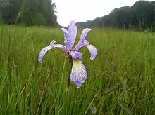 Iris prismatica is a perennial herb spreading by means of rhizomes that are close to the surface of the soil. Flowering stalks can reach a height of 80 cm. Leaves are long and narrow, up to 60 cm long but rarely more than 5 mm across. It has 2–3 blooms in May.[2] Flowers are pale blue to blue-violet.[6][7][8][9][10] It tends to grow in swampy,[2] wet conditions,[3] and within the United States, it is currently state listed as 'threatened' in Maine, New Hampshire, New York, and Tennessee, and state listed as 'endangered' in Maryland and Pennsylvania.[11] It is cold hardy to USDA Zone 3.[2]