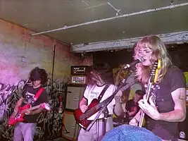Critics have categorised the band as alternative rock,[18][19] indie rock,[20][21] garage rock[22][23] and indie pop,[13] often making use of elements of pop,[24] grunge,[25] jangle pop,[26] college rock,[27] power pop, garage punk,[28] shoegaze, punk rock, noise rock and post-punk.[10] Their music often makes use of fuzz in both guitar tones and vocals. They also use lo-fi production techniques.[10] DIY writer Bella Martin likened their sound to "90s slacker rock with a DIY punk aesthetic, or the Cribs at their least immediate via the kind of tempered sonic layering that circa-2010 breakthroughs Japandroids and Cloud Nothings were fond of".[26] NME writer Becky Rogers cited them as merging influences from Black Sabbath, the Beach Boys and the garage rock revival.[1] Brighton and Hove News writer Nick Linazasoro described them their music as "loud, ragged and raw punk, but with a melodic west coast indie Barracudas grunge edge".[3]