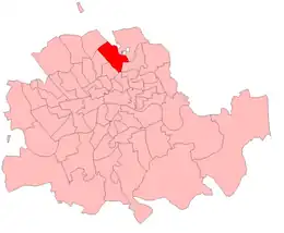 Islington East in the Metropolitan area, showing boundaries used 1885-1918