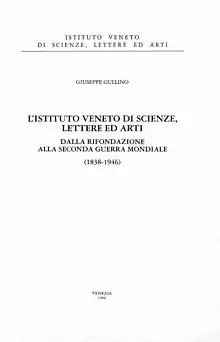 • G. Gullino L'Istituto Veneto di Scienze Lettere ed Arti, dalla rifondazione alla Seconda Guerra Mondiale (1838-1946), Istituto Veneto di Scienze, Lettere ed Arti, Venezia (1996) ISBN 88-86166-26-5 1