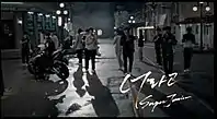 The music video was directed by Cho Soo-hyun and filmed in a studio in Ilsan, Gyeonggi-do, South Korea in late April 2009.[5] It premiered on the evening of May 12, 2009 on Cyworld with a positive reception. The music video was originally planned to be released on the same day as the repackaged album release, but because an unfinished version of it was illegally leaked on the morning of May 12, SM Entertainment decided to push forward the release time to 7 P.M. of that same day.[6] There are slight differences in both versions. In the leaked unedited version, there are more scenes of Han Geng whispering the phrase "it's you" (너라고, Neorago) in Korean, while in the official release, those scenes are replaced with the Super Junior members assembling to their stools. Certain scenes are also shot at different angles, and more special effects are added into the dancing scenes.
