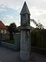 The parish church in the settlement is dedicated to Saint Joseph and belongs to the Roman Catholic Archdiocese of Ljubljana. A wayside shrine in the centre of the settlement known as the Abbot's shrine (Slovene: Opatovo znamenje) appears on the coat of arms of the municipality. It was a Roman milestone that was recarved in 1583 on the orders of Laurentius Rainer, the abbot of the Cistercian Abbey at nearby Stična.[6]