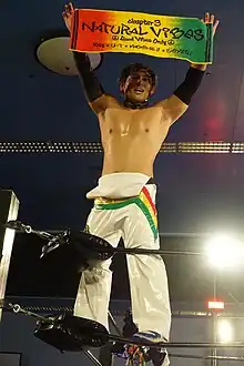 Taketo Kamei (亀井丈人, Kamei Takehito) better known by his ring name Jacky "Funky" Kamei is a Japanese professional wrestler currently working for the Japanese promotion Dragon Gate where he is a former Open the Twin Gate Champion and Open the Triangle Gate Champion.[3][4]