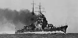 Takao (高雄) was the lead vessel in the Takao-class heavy cruisers, active in World War II with the Imperial Japanese Navy. These were the largest cruisers in the Japanese fleet, and were intended to form the backbone of a multipurpose long-range strike force. Her sister ships were Atago, Maya and Chōkai.[1] Takao was the only ship of her class to survive the war. She was surrendered to British forces at Singapore in September 1945, then sunk as a target ship in 1946.
