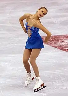 Vähämaa performs a forward outside edge spiral during her short program at the 2008 World Junior Championships.