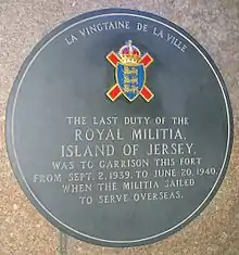 In 1336, the exiled King David II of Scotland, from his base in France, raided the island of Jersey.[4] The following year, in response to the threat of a repeat of this incursion, King Edward III ordered Thomas de Ferrers, Warden of the Isles, to levy and equip a militia of "all men capable of bearing arms, and to form them into companies of thousands, hundreds and twenties, and to lead them well-armed and arrayed for the defence of the islands".[5][6][7][8] This created an organised, compulsory, and unpaid Island militia.