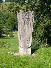 A memorial stone near the entrance to the cemetery commemorates the now vanished Jewish community of Buttenhausen. Between 1940 and 1943 elderly Jews from the whole of the German Reich were forcibly sent to the so-called Jüdisches Altersheim ("Jewish Retirement Home"), namely the vacated quarters of Buttenhausen's Jews. From there, they were despatched to death camps. They are commemorated by a sculpture in the cemetery made from sections of railway track by the Swabian poet and singer-songwriter Thomas Felder.