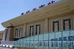 Jiayuguan South railway station (Chinese: 嘉峪关南站; pinyin: Jiāyùguān Nán Zhàn) is a railway station located in Jiayuguan, Gansu Province, China. It was put into operation on December 26, 2014.[1][2][3] It serves the Lanzhou–Xinjiang High-Speed Railway with High Speed services between Lanzhou and Urumqi and conventional services connecting Urumqi to various cities in Eastern and South Western China. It is the second major railway station serving Jiayuguan, with Jiayuguan railway station, which serves the conventional Lanzhou-Xinjiang Railway.