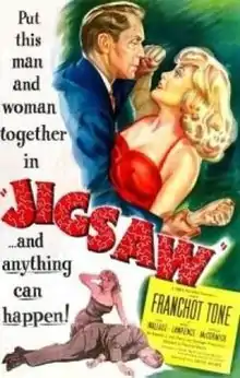 Jigsaw is a 1949 American film noir crime drama directed by Fletcher Markle starring Franchot Tone, Jean Wallace and Marc Lawrence. The feature was produced by the Danziger Brothers, Edward J. Danziger and Harry Lee Danziger, from a screenplay by Vincent McConnor and Fletcher Markle, based on a story by John Roeburt.[2]