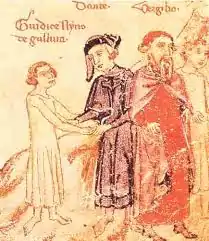 Joanna was the daughter of Ugolino (also known as Nino) and Beatrice, daughter of Obizzo II d'Este. Upon Nino's death in 1296, Joanna became the last Judge of Gallura.[1] She succeeded her father when she was a baby, though her succession was purely nominal. Not long after her father's death, the Republic of Pisa, affiliated with the Ghibellines, took most of her inheritance.[2] Nino had been a notable Guelph leader who had served as podestà in Pisa until his exile in 1288, during which he aligned with known Pisan enemies Florence and Lucca and led a campaign against Pisa.[3]