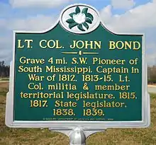 Lt. Colonel John Bond Jr. (1770 − October 22, 1862) was an American military officer, Mississippi pioneer, and Mississippi Legislator.