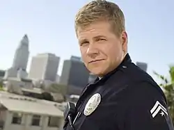 Michael Cudlitz as Officer John Cooper, shown wearing the rank patch of a Senior Lead Officer.