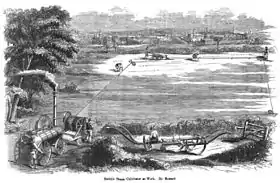 Smith's Steam Cultivator at Work, from Donaldson's British agriculture, 1860.