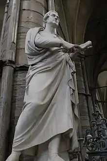 John Gibson RA (19 June 1790 – 27 January 1866) was a Welsh Neoclassical sculptor who studied in Rome under Canova. He excelled chiefly in bas-relief, notably the two life-size works The Hours Leading the Horses of the Sun and Phaethon driving the Chariot of the Sun, but was also proficient in monumental and portrait statuary. He is famous for his statues of Sir Robert Peel (Westminster Abbey), William Huskisson (St George's Square) and Queen Victoria (Houses of Parliament).[1][2][3] Gibson was elected a Royal Academician in 1836, and left the contents of his studio to the Royal Academy, where many of his marbles and casts are currently on display.