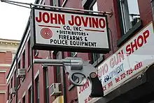 Although many of its customers are in law enforcement, the company was near the top of a list of sellers whose guns were linked to New York City crimes in a 2003 report by a Columbia University researcher using data from the Bureau of Alcohol, Tobacco and Firearms. Some 102 guns of 11,700 used in crimes and later identified came from the Jovino shop.[1] According to current owners, until the 1980s the Jovino Company was "one of the biggest dealers in the country" and sold guns to many police departments. The study did not suggest any wrongdoing by the dealers listed (the store is not legally responsible for how people use the products they legally sell) and did not take into account that a store that has a higher volume of sales would most likely have a higher number of sales to people who later used the firearms in crimes, even if the store had a lower ratio of firearms used in crimes bought from the store per total sales than a store with a smaller volume of sales.[1] A 2007 Village Voice article raised questions about the store's sales to United Nations diplomats from the Democratic Republic of Congo.[2]