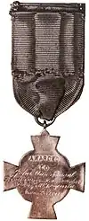 ![]() Reverse of John Otto Siegel's Tiffany Cross Medal of Honor | |