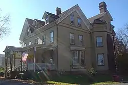 The mansion was later divided into eight apartments. Also located on the property are a contributing carriage house, barn, trophy house, spring house, remains of greenhouses, a root cellar, and an ice house.[2]