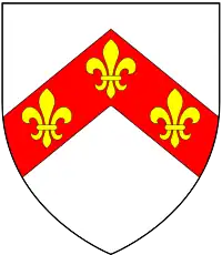 Coat of arms of John Peyvre, Lord of Toddington, Argent, on a chevron gules, three fleurs-de-lis or