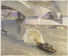 During World War II, a number of paintings by Platt were purchased by the War Artists' Advisory Committee[13] and in 1943 he was awarded a full-time contract to produce paintings for the Ministry of War Transport. Over the next year he painted scenes of river traffic, the maritime rescue services, ocean transport, docks and marshalling yards. He mostly worked on and around the Thames in London from a studio in Putney, but he also visited Liverpool and Cornwall to complete his commission.[14]