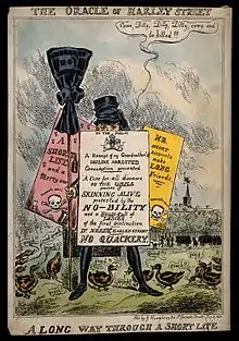 Coloured etching by Sharpshooter,[3] 8 September 1830, lampooning the manslaughtering quack doctor John St. John Long