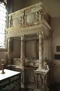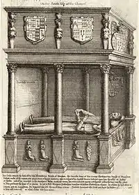 Monument with effigies of Sir John Throckmorton and his wife Margaret Puttenham, SE corner of chancel, Coughton Church, Warwickshire, drawn by Wenceslaus Hollar (died 1677)