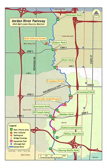 Map of Mid-Salt Lake County section of the Jordan River Parkway
