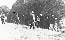 In contrast, some of Josef Schulz's former Wehrmacht comrades said that the person on the photographs was not Schulz.[4] A 1972 report of the Central Office of the State Justice Administration for the Investigation of National Socialist Crimes in Ludwigsburg, Germany, also rejected the person's identification as Schulz.[4] Studies conducted by the staff of the Ludwigsburg office and the Freiburg Military Archive conclude that Josef Schulz was killed already on 19 July 1941,[2][3][4] during an engagement with partisans,[2][3] and that he was reported dead to the army command on 20 July 2:00 AM, with a respective notice sent to the relatives subsequently.[4] Many scholars have since dismissed Schulz's alleged role in the incident on 20 July as a legend.[2][3]