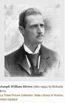 - 1 2 3 4 5 Weston, Bate (1983). "Kirton, Joseph William (1861–1935)". Australian Dictionary of Biography. National Centre of Biography, Australian National University. ISSN 1833-7538. Retrieved 7 April 2021.