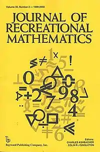 The Journal of Recreational Mathematics was an American journal dedicated to recreational mathematics, started in 1968.[1] It had generally been published quarterly by the Baywood Publishing Company, until it ceased publication with the last issue (volume 38, number 2) published in 2014. The initial publisher (of volumes 1–5) was Greenwood Periodicals.