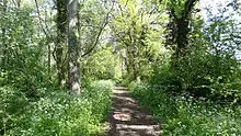1. The Natural England map incorrectly shows the western wood as the LNR. Kingston Council's own map of LNRs[5] and a notice on the site shows the eastern wood as the LNR.