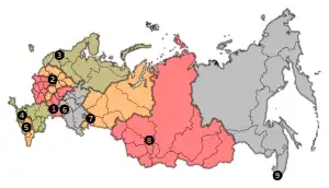 On 1 October 2019 five courts of appeal of general jurisdiction[lower-alpha 1] and nine courts of cassation of general jurisdiction[lower-alpha 2] were created in the Russian Federation, which are operating within the respective judicial district.[1]