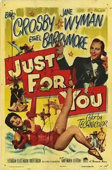 Just for You is a 1952 American musical film starring Bing Crosby and Jane Wyman and the final motion picture to be directed by Elliott Nugent. It was nominated for Best Song at the 1953 Academy Awards. The film was based on the book Famous by Stephen Vincent Benét.[2] Filming took place between October 22 and December 20, 1951. It is said that Judy Garland had originally been sent a script as she was being considered for the female lead, but she apparently decided not to proceed with the project. Location scenes were filmed at Lake Arrowhead, near San Bernardino, California and at Big Bear Lake in the San Bernardino National Forest.[3]