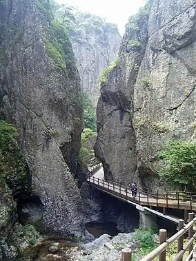 Juwangsan National Park (Korean: 주왕산국립공원, 周王山國立公園) is located in North Gyeongsang province, South Korea, and is part of the Taebaek mountain range. It was designated the 12th national park in South Korea in 1976. The total size of the park is 107.42 km2 (41.48 sq mi). The park is home to 88 plant species and 924 animal species.[1]