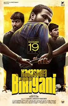 Kadaseela Biriyani (transl.Biryani in the end) is a 2021 Indian Tamil-language black comedy film directed and co-written by Nishanth Kalidindi in his debut.[1] The directorial debut of Nishanth Kalidindi, it was shot in 2016 and completed in 2018,[2] but was released theatrically over three years later on 19 November 2021.[1] The film stars Vasanth Selvam, Dinesh Mani and Vijay Ram and met with positive reviews.[3][4][5] Set in Kottayam, Kerala, the film contains Malayalam dialogues.[1] Three brothers break into the rubber estate to avenge their father's death, but fate has cruel plans as they are welcomed by the landlord's psychopath son.[6]