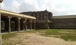 A granite wall surrounds the temple, enclosing all its shrines. The temple has a flat gateway tower, unlike other South Indian temples that have a pyramidal entrance tower. The temple was originally built by Chandrakula Pandya Vijayanagar and Nayak kings commissioned pillared halls and major shrines of the temple during the 16th century. The temple has artistic sculptures representative of Nayak art.