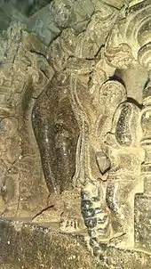 Relief of Chelu Sundari curved on the pillar base in the Kalleshvara temple at Bagali
